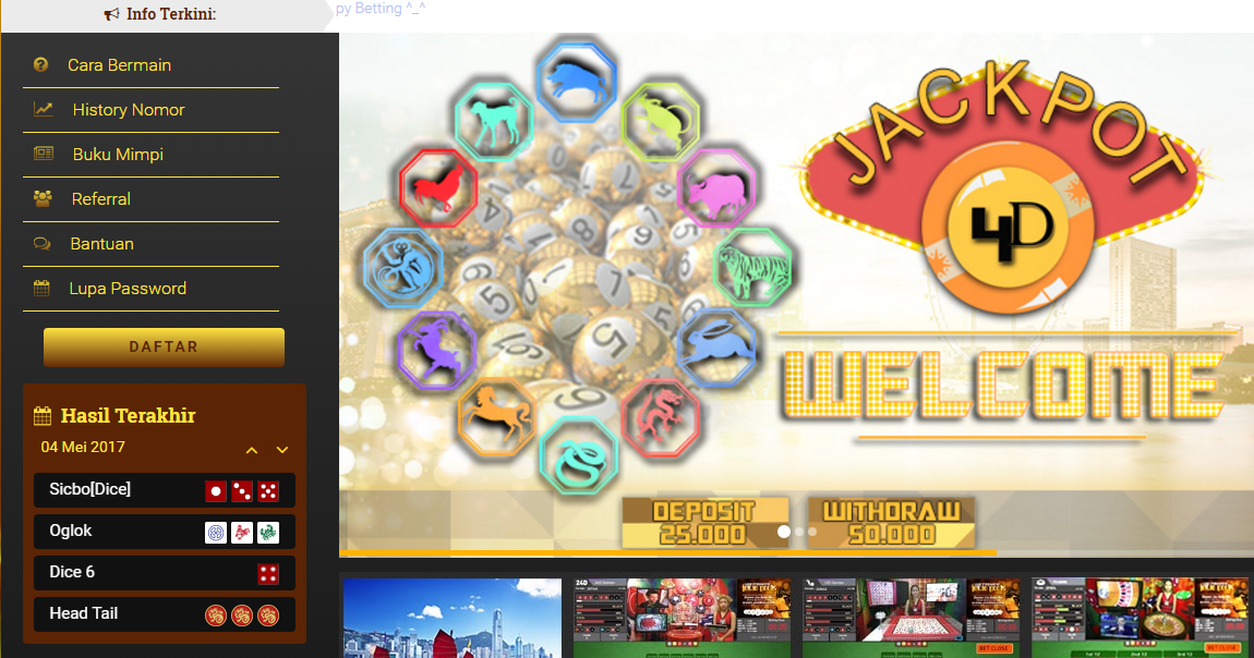 Dalam menjadi bandot bandar judi online terbaik serta terpercaya kelihatannya tidak cuman dari jenis layanan dan permainannya semata-mata. Ya, jackpot4d layaknya yang dilihat di masing-masing situs tempat judi online terpercaya dan berpengalaman kadang-kadang menawarkan pilihan permainan yang besar dengan sarana yang akan memuaskan para penjudinya. Kedua fasilitas yang akan memberikan kenyamanan para membernya ini kurang bisa dijadikan jenis tolak ukur bila situs bandar judi online yang di mainkan paling terkenal. Tentu saja perkara yang teramat menarik diantara bermain judi online adalah besaran dari pada bonus yang didapat mampu sangat menggoda. Bonus hal semacam ini bukan hanya pilihan satu jenis, melainkan ada amat banyak bonus kalau dihitung.